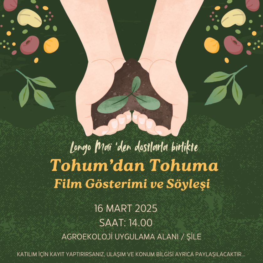 Şile’deki tarlamızda 16 mart 2025 tarihinde yaptığımız etkinliğimize Kadıköy’den mahalliler, kooperatif dostları ve Şile’den çiftçiler katıldı. Longo Mai’lilerin hazırladığı belgeseller içinden kendimizce bir seçki yaptık. Tohum nedir ile domates, biber, patlıcan bitkilerinin tohumları nasıl alınır ve saklanır konularında. Longo Mai Komünü hazırladıkları belgesellerde bilhassa altyazı kullanmıyorlar. Belgesellerin ilgili ülke diline çevrilmesini önemsiyorlar ve aslında bu tür filmlerde hem izleyip hem altyazı okumanın bilginin öğrenilmesini zorlaştırdığını düşünüyorlar. Belgesellerin türkçe diline çevrilmesinde ve halkın faydasına youtube kanalı üzerine yüklenmesine emeği geçen Bediz Yılmaz’a da ayrıca teşekkür ediyoruz.