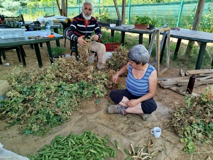 Yaklaşık 3 torba bezelye topladık. Gölgede beklettik ki nemlenmesin. Bundan sonrası bezelyeleri kooperatife taşımak ve gelen siparişlere karşılık dağıtımını yapmak. İlk ürün, ilk hasat başkaları için ne ifade ediyor bilmiyoruz ama bizim için büyük bir adım olduğunun farkındayız. Çıkacak mı, yetişecek mi, geç mi kaldık vb. aklımızda bir dolu soru varken bezelyeler bizi çok mutlu etti. Gerçekten 1 kg tohum ektik, 120 kg bezelye elde ettik. Ayrıca toprağı zenginleştirdik, elimizde yeşil gübre yapacağımız bitkinin yaprakları kaldı. Tarladan çatala bezelyenin hikayesine eşlik etmekten keyif aldık. Darısı yaz ekiminin başına…